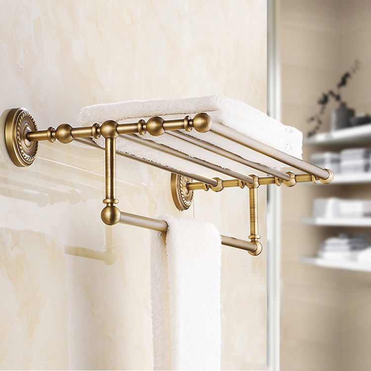 Upgrade your bathroom with the exquisite charm of this high-end antique towel rack set. Made from premium copper, this set includes a bath towel rack and various bathroom hardware pendants. With its free punch design, it offers hassle-free installation, while the light luxury aesthetic adds a touch of elegance to any bathroom decor. Elevate your bathing experience with this exceptional bathroom rack.