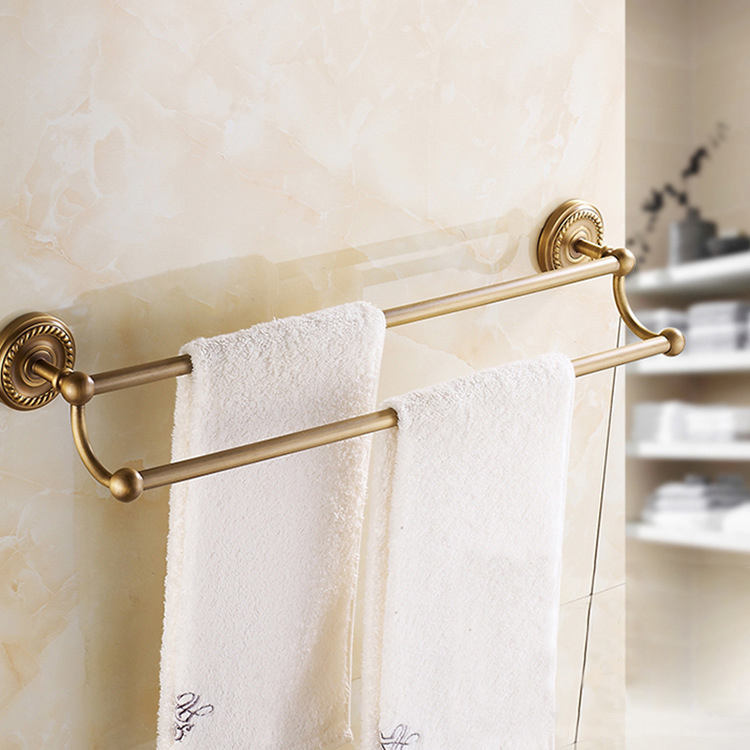 High-end antique towel rack Brass free punch bathroom hardware pendant set bath towel rack light luxury bathroom rack