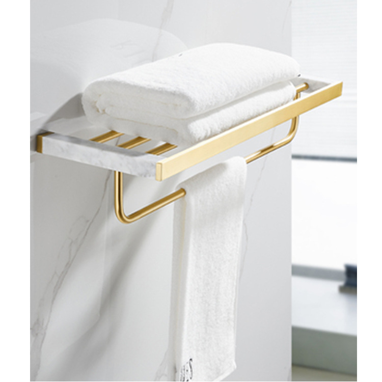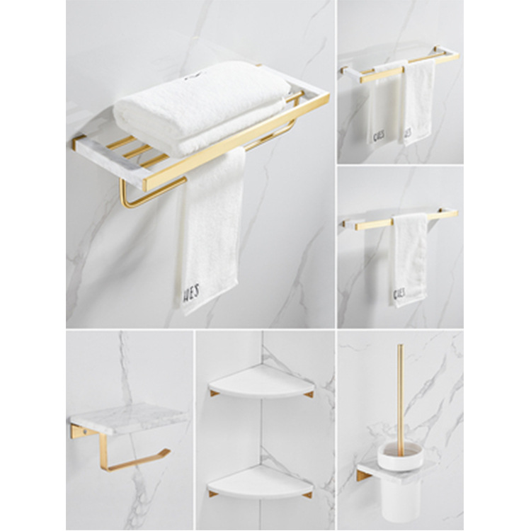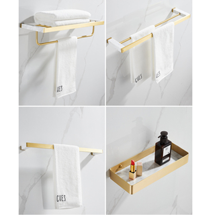 Enhance your bathroom with the Nordic light luxury brushed gold copper bath towel rack, a stylish and durable hardware pendant set.